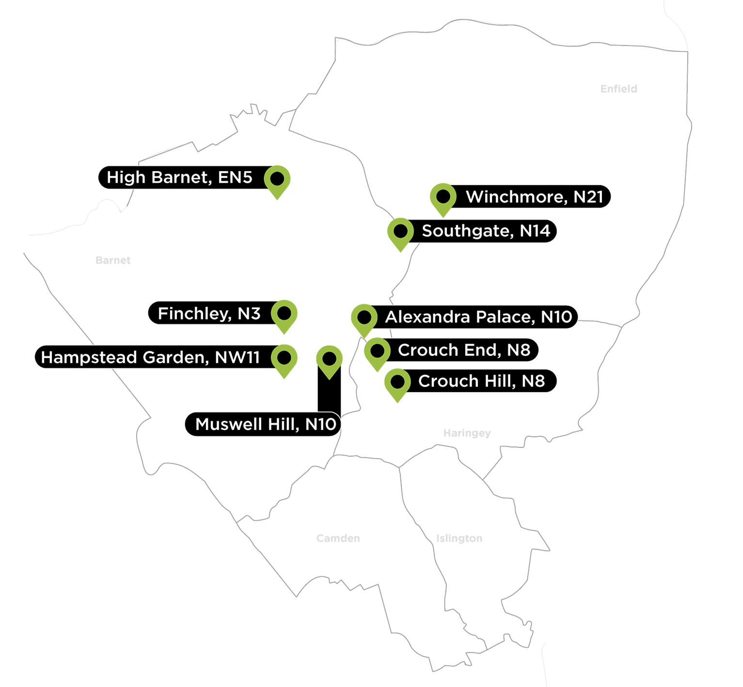 We have 9 PT studios across North London, serving: Alexandra Palace, Crouch End, Finchley, High Barnet, Hampstead, Muswell Hill, Southgate and Winchmore.